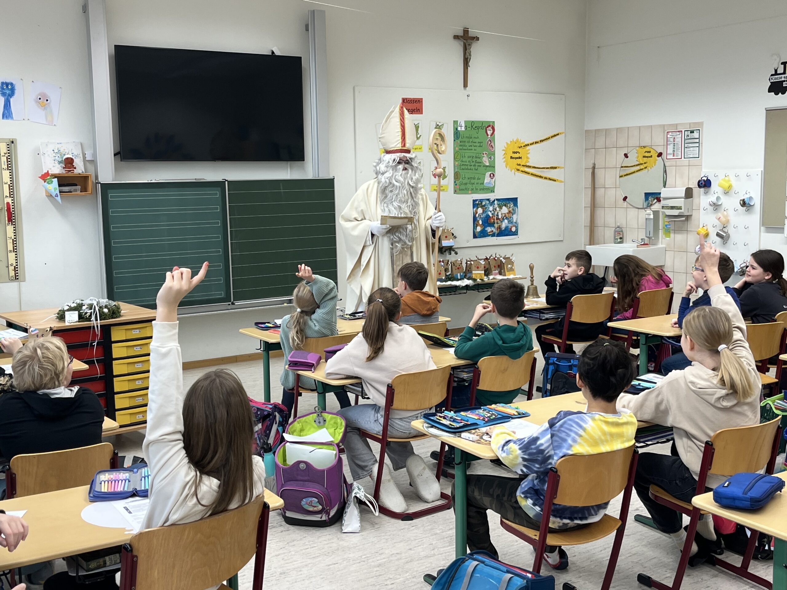 Am Montag war der Nikolaus zu Besuch an unserer Grundschule. Mit großer Vorfreude erwarteten die Kinder sein Kommen – und die Augen leuchteten, als er schließlich in die Klassen trat. Der Nikolaus schenkte jedem Kind einen leckeren Weckenmann, was für strahlende Gesichter und viel Freude sorgte.